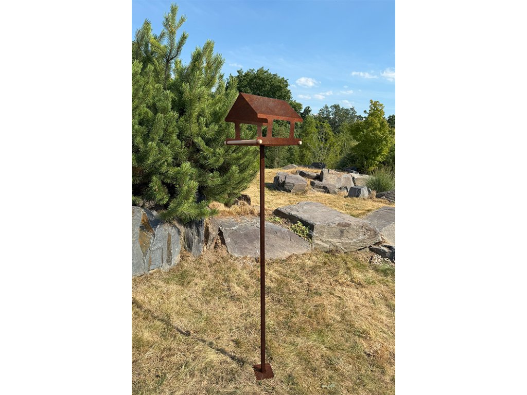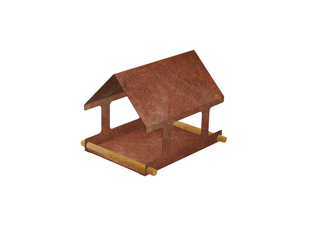 Krmítko je vyrobeno z vysoce kvalitní švédské cortenové oceli, která časem získává typickou rezavou patinu. Ta nejen chrání ocel proti korozi, ale zároveň dává výrobku teplý a přirozený vzhled, který se s věkem zjemňuje a ladí s prostředím zahrady. Materiál je bezúdržbový, ekologický a 100% recyklovatelný.