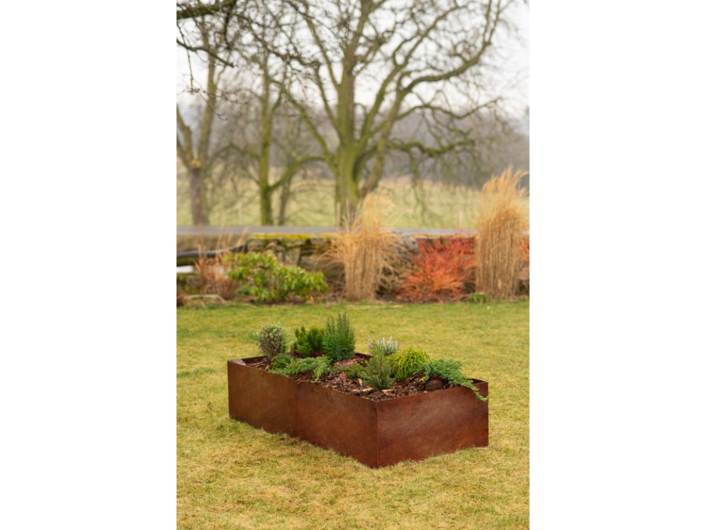 Vyvýšený záhon VIVO je ideálním řešením pro pěstování zeleniny, bylinek i květin. Díky použití originální švédské oceli COR-TEN® je nejen vizuálně atraktivní, ale i extrémně odolný vůči povětrnostním vlivům. Povrch oceli v exteriéru postupně získává charakteristickou rezavou patinu, která tvoří přirozenou ochrannou vrstvu – bez potřeby nátěru či další údržby.