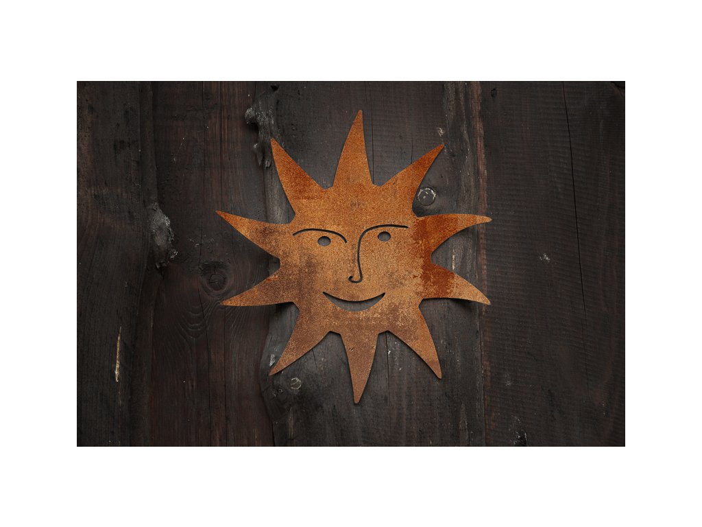 Tato stylizovaná silueta slunce s milým úsměvem je vyrobena z odolné švédské oceli COR-TEN®, která časem získává krásnou přírodní patinu – jemnou vrstvu rzi, jež chrání povrch a dodává dekoraci teplý a přírodní charakter. Každý kus tak s časem zraje a stává se originálem.