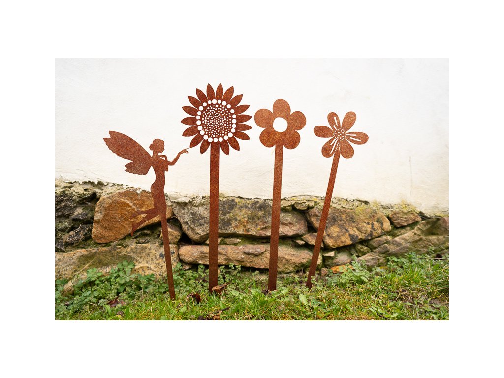 Tato dekorativní slunečnice je vyřezána z kvalitní švédské cortenové oceli, která časem přirozeně získává teplou patinu v odstínech zlatavé rzi. Tato vrstva nejen chrání materiál před korozí, ale zároveň dodává celé dekoraci výrazný přírodní vzhled, který krásně ladí s okolní zelení, kamenem i dřevem.