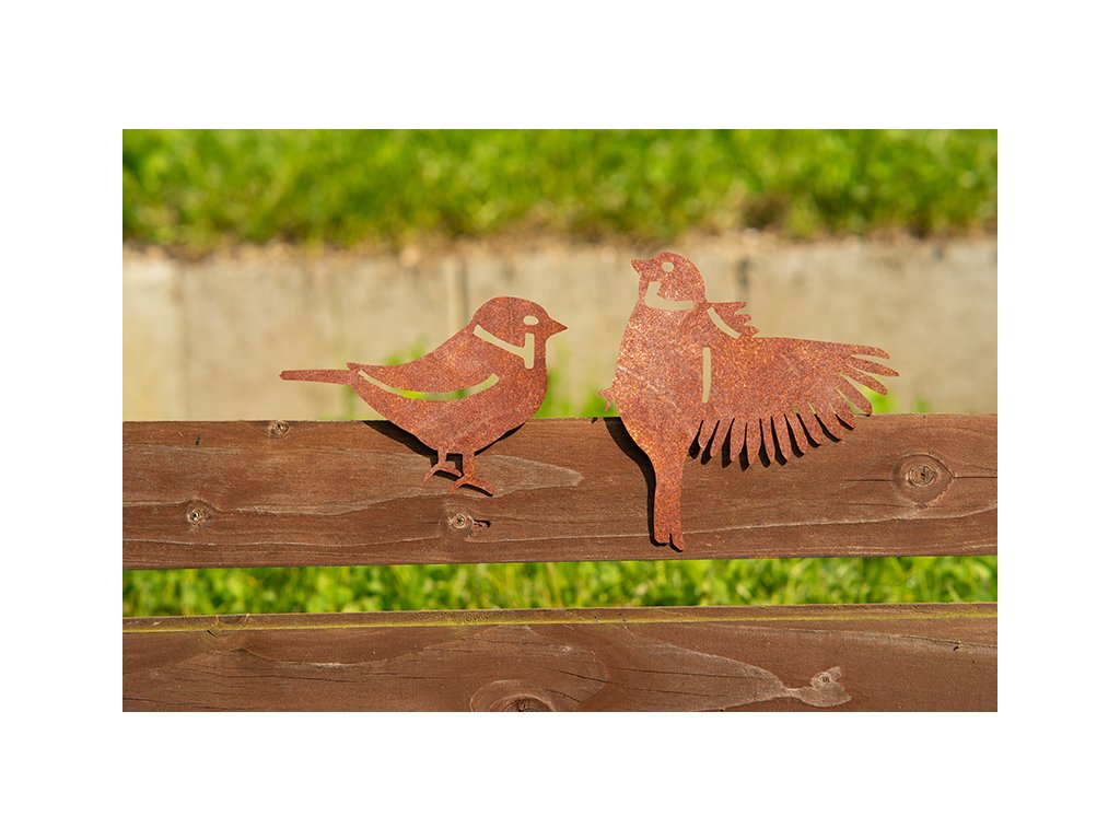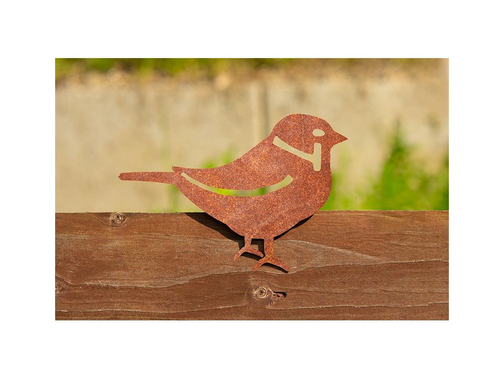 Díky zadnímu montážnímu plechu s otvorem lze vrabce snadno přišroubovat k pevnému povrchu – na dřevěný trám, plot, zídku nebo větší větev. Dobře vynikne samostatně, ale i jako součást větší kompozice – například spolu s dalšími ptáky z cortenové série.