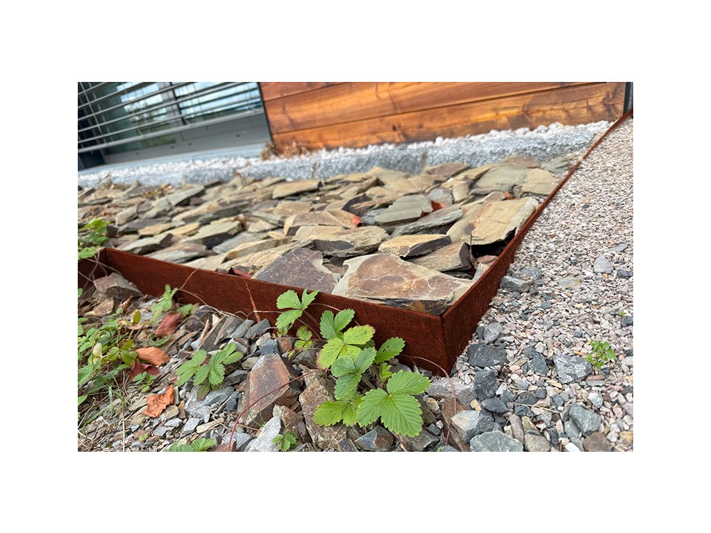 V počáteční fázi může COR-TEN® uvolňovat rezavě zbarvenou vodu, která zanechává skvrny. Doporučujeme proto umístit obrubník na místo, kde to nebude vadit.